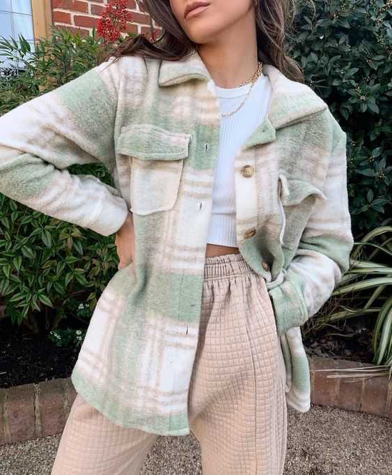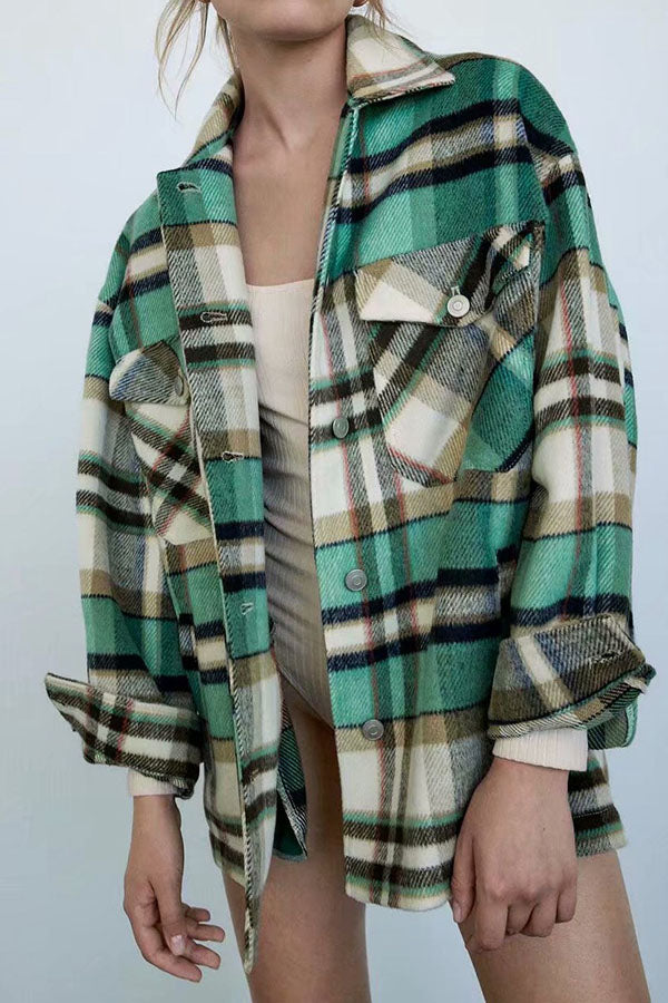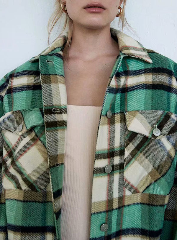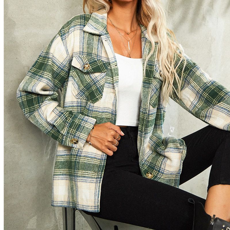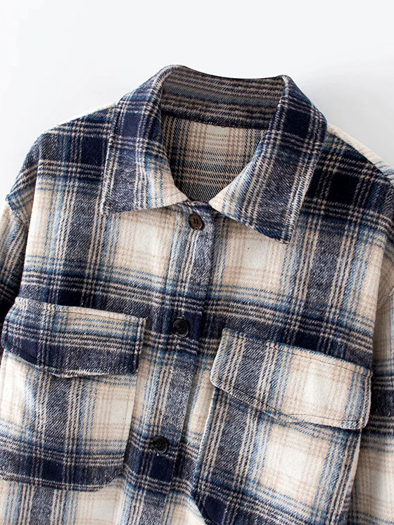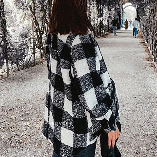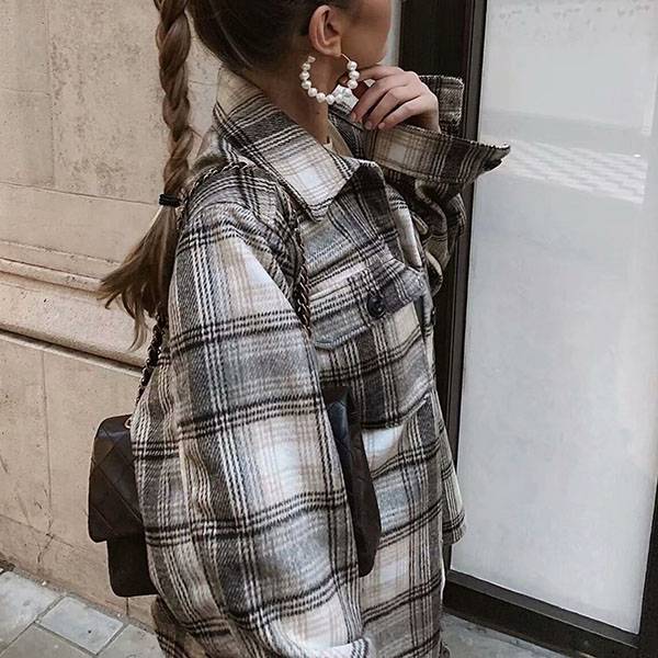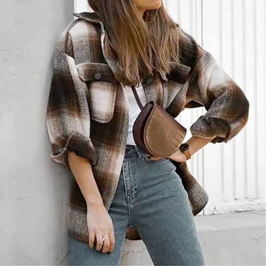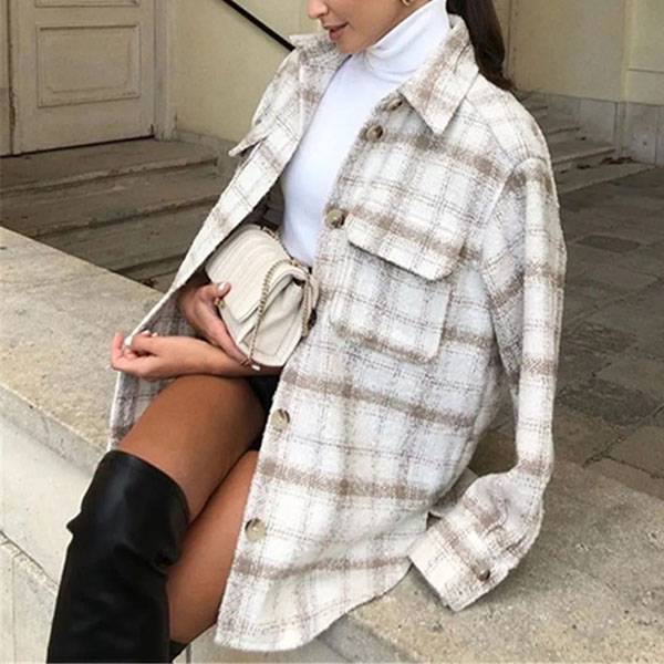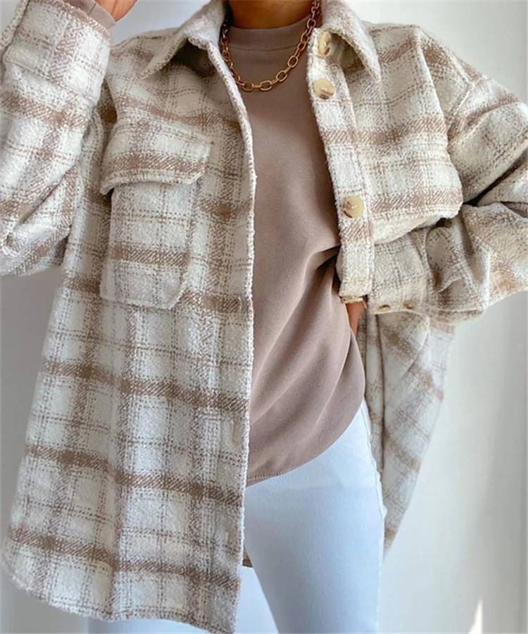 Design: Collared, Button Up, Long Sleeves, Lattice, Large Pockets, Casual and Oversized.