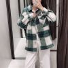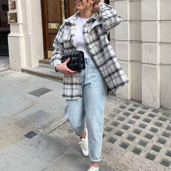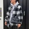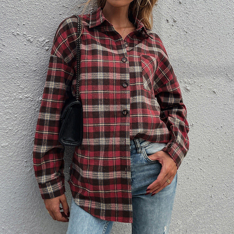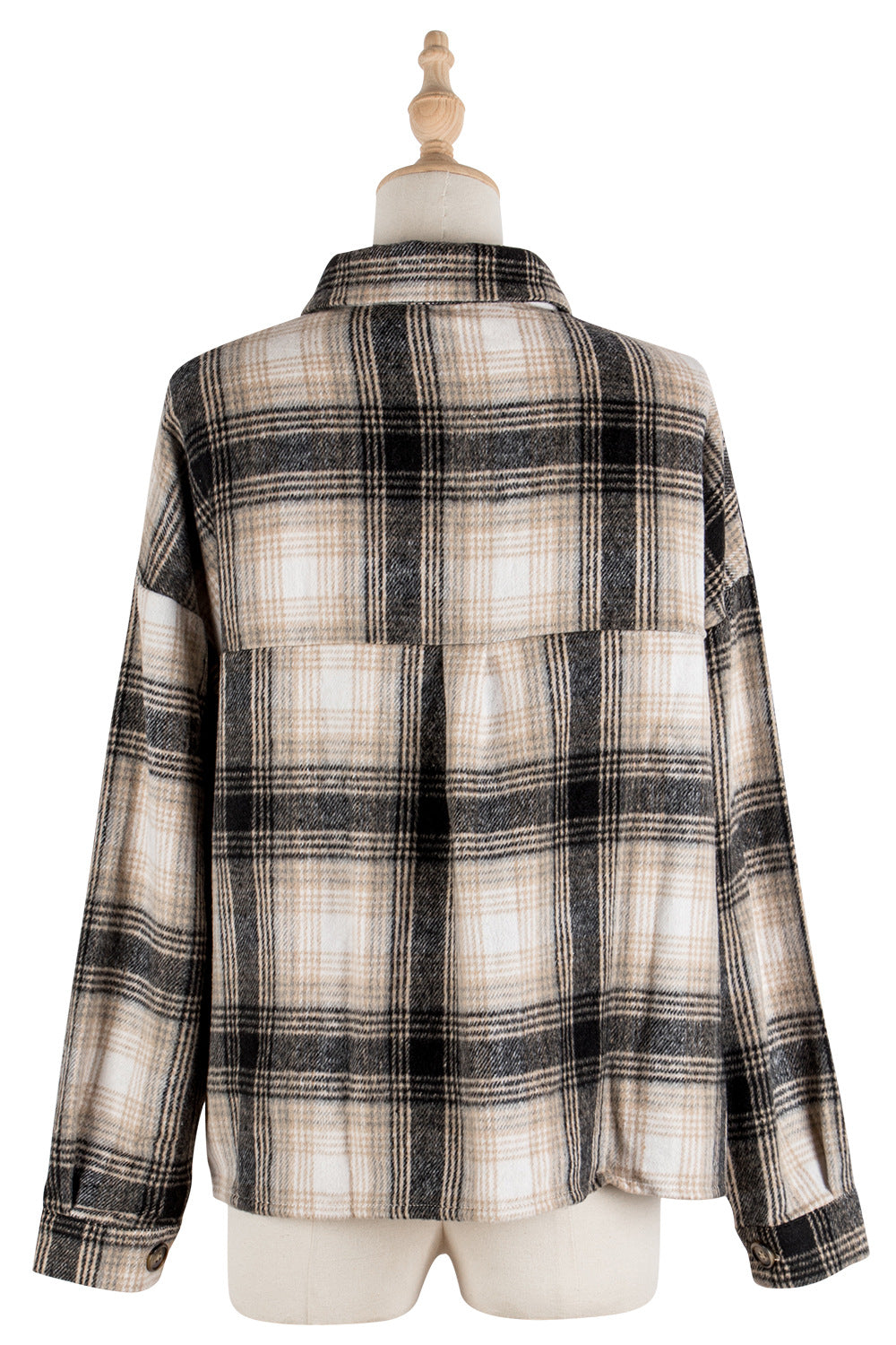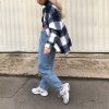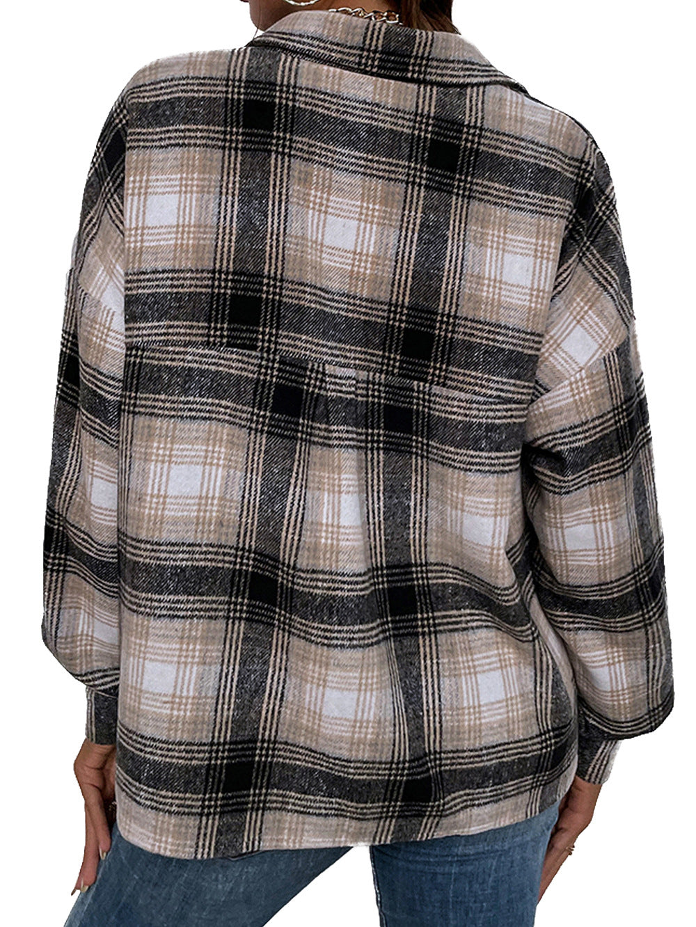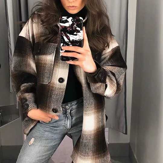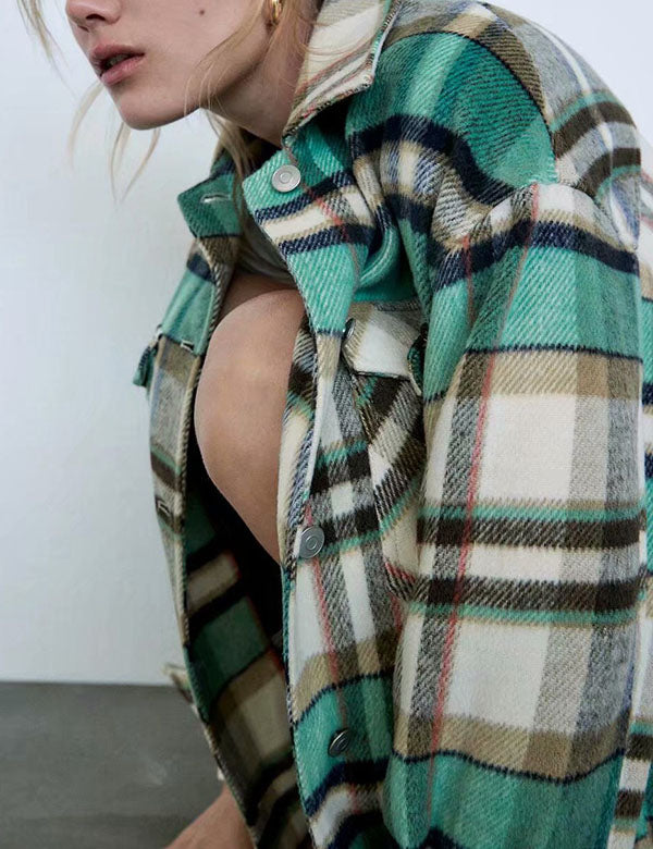 Design: Collared, Button Up, Long Sleeves, Lattice, Large Pockets, Casual and Oversized.